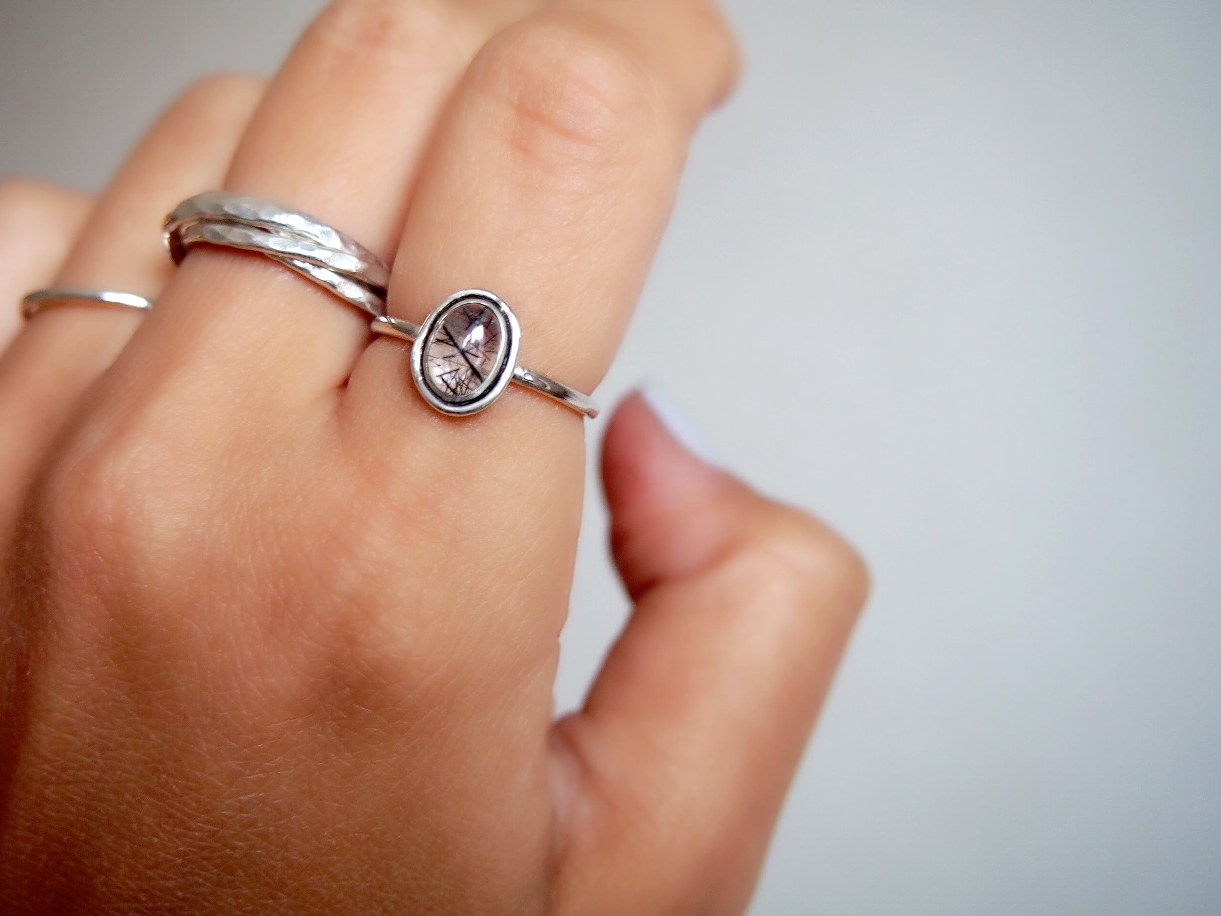 水晶の中に包まれた鉱物(Black Tourmaline)の