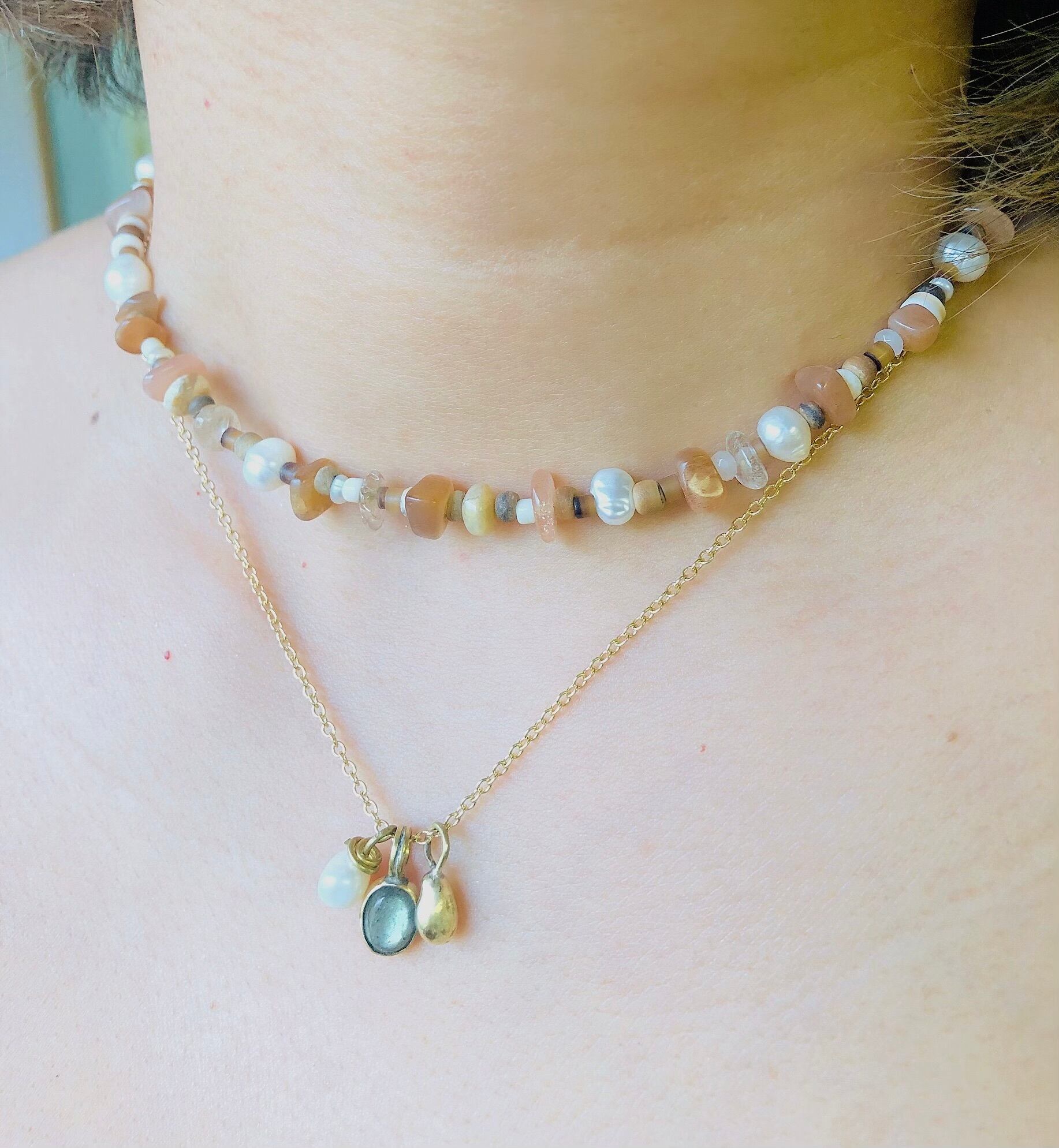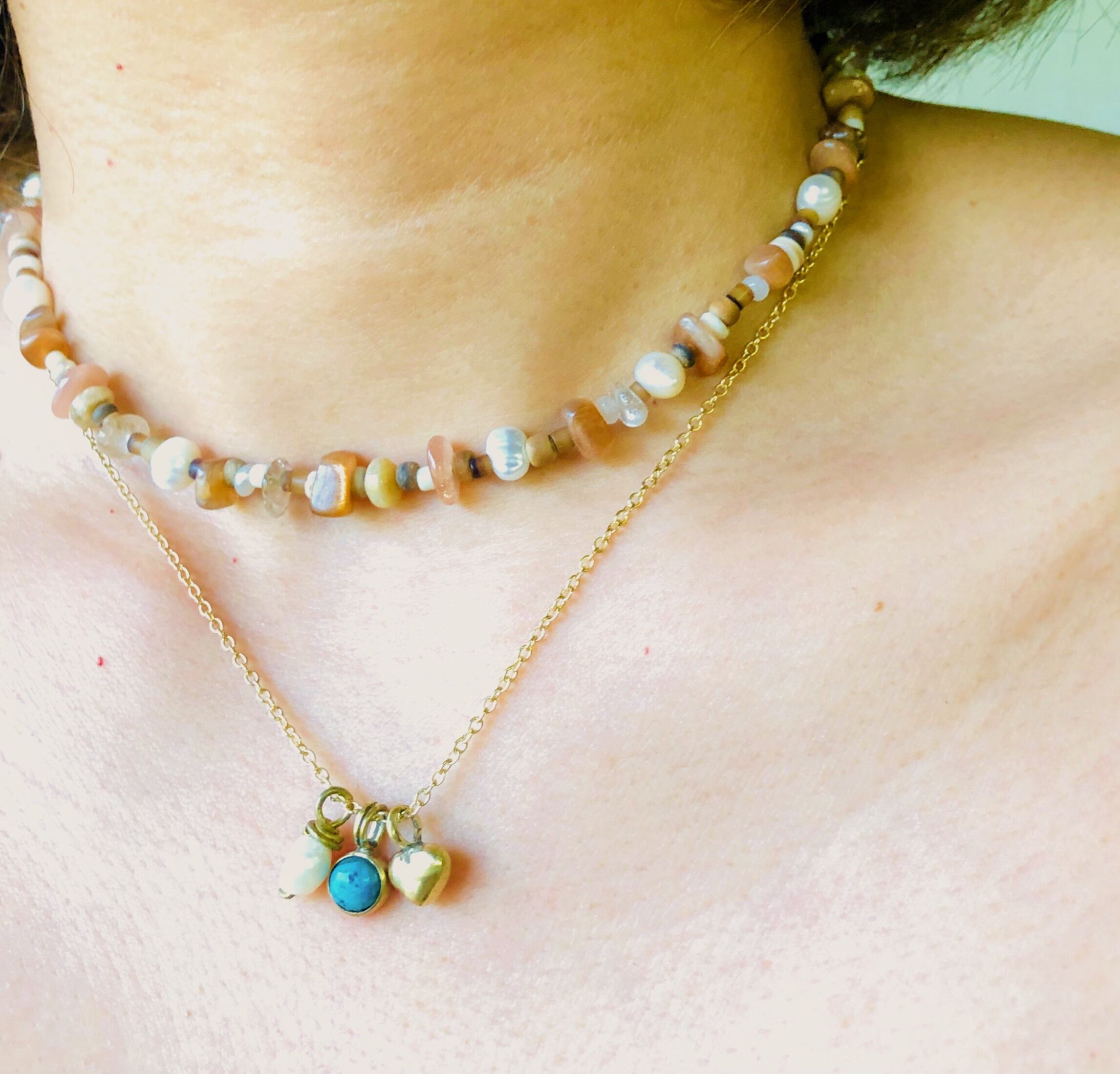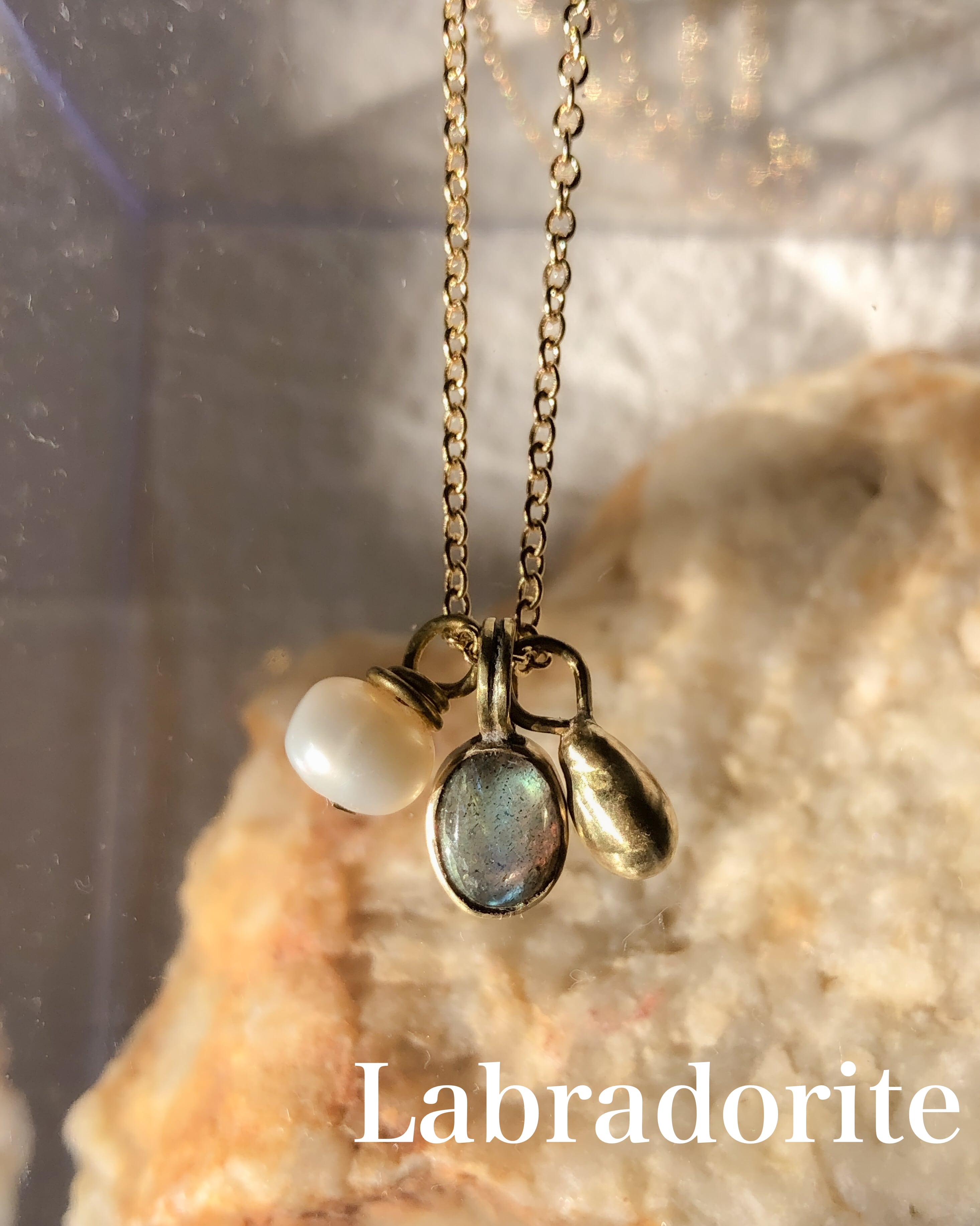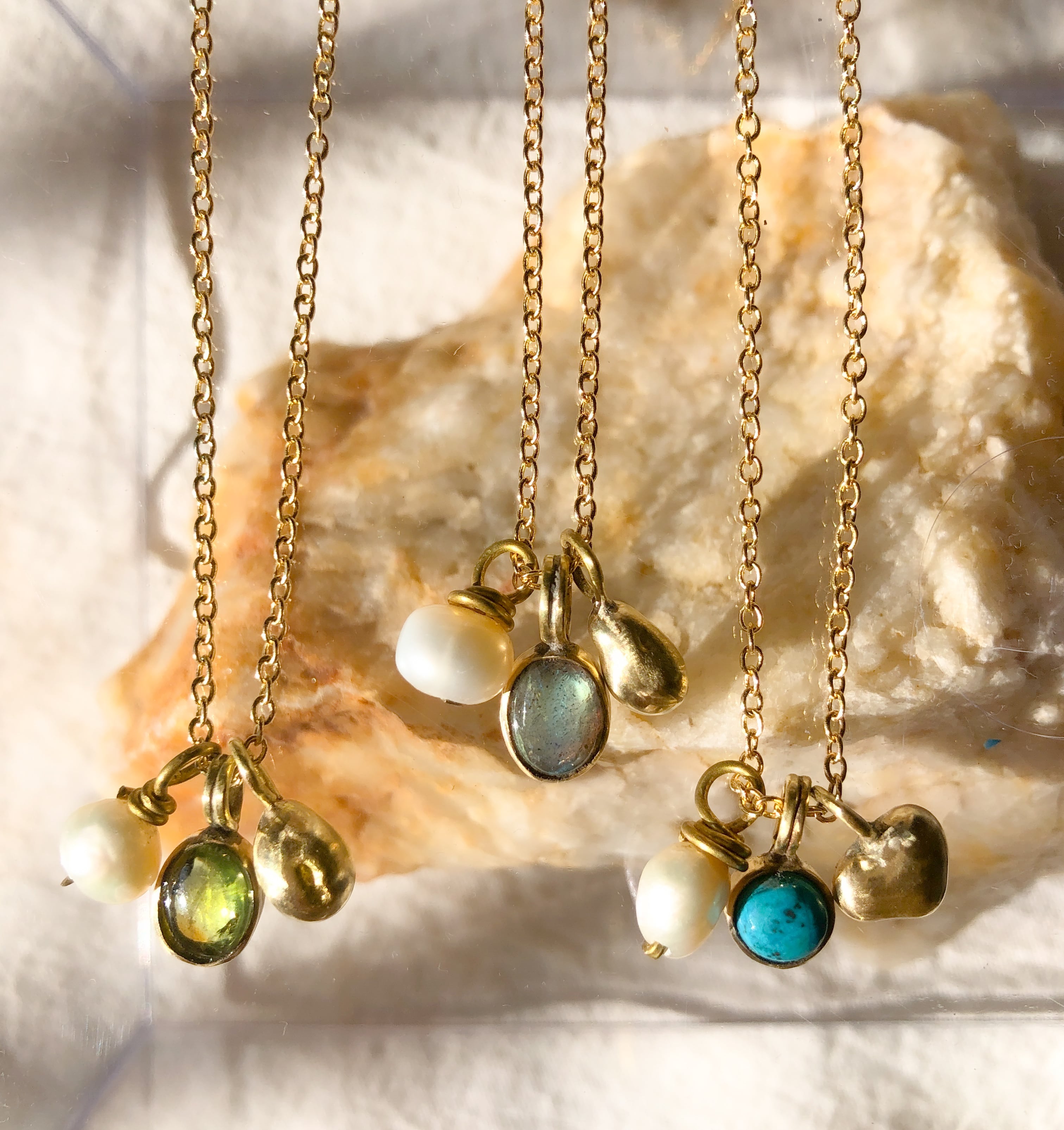 真鍮のゴールドカラーに合う天然石を1粒使用した